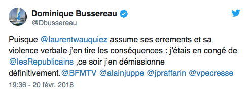 La réaction de Laurent Wauquiez sur BFM-TV le 20 février 2018: