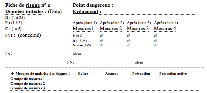 Exemple de contenu pour chaque « Fiche de risque » :