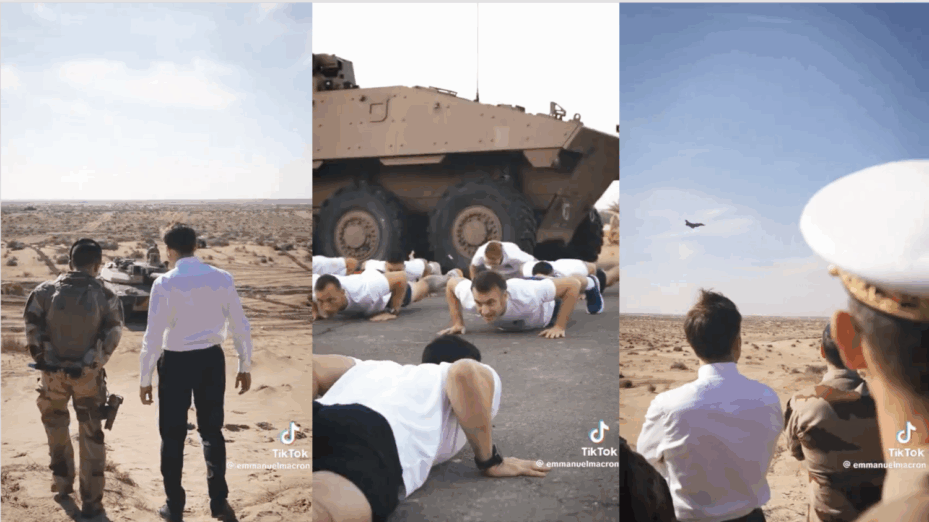 Et puis – clou de ce lamentable spectacle – il y a cette séance de sport, publiée sur TikTok, dans laquelle le Président se met en scène au milieu des soldats qui font leur exercice quotidien. En short et tee-shirt règlementaire, sous la férule du célèbre influenceur Tibo InShape, Macron et les soldats français courent et font des pompes, « des pompes commando », précise le dépositaire du bouton nucléaire, heureux comme un gamin de montrer qu’il a « la caisse » en sport.